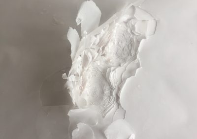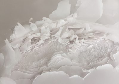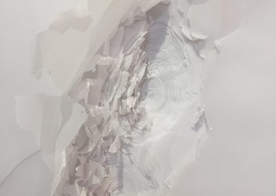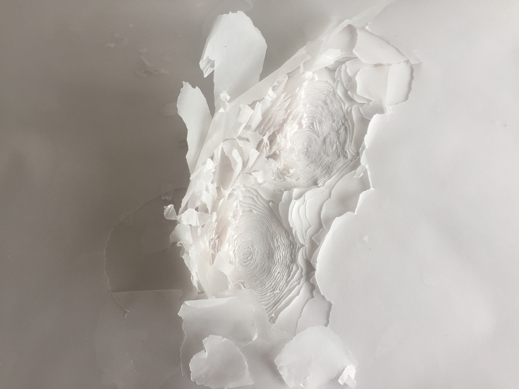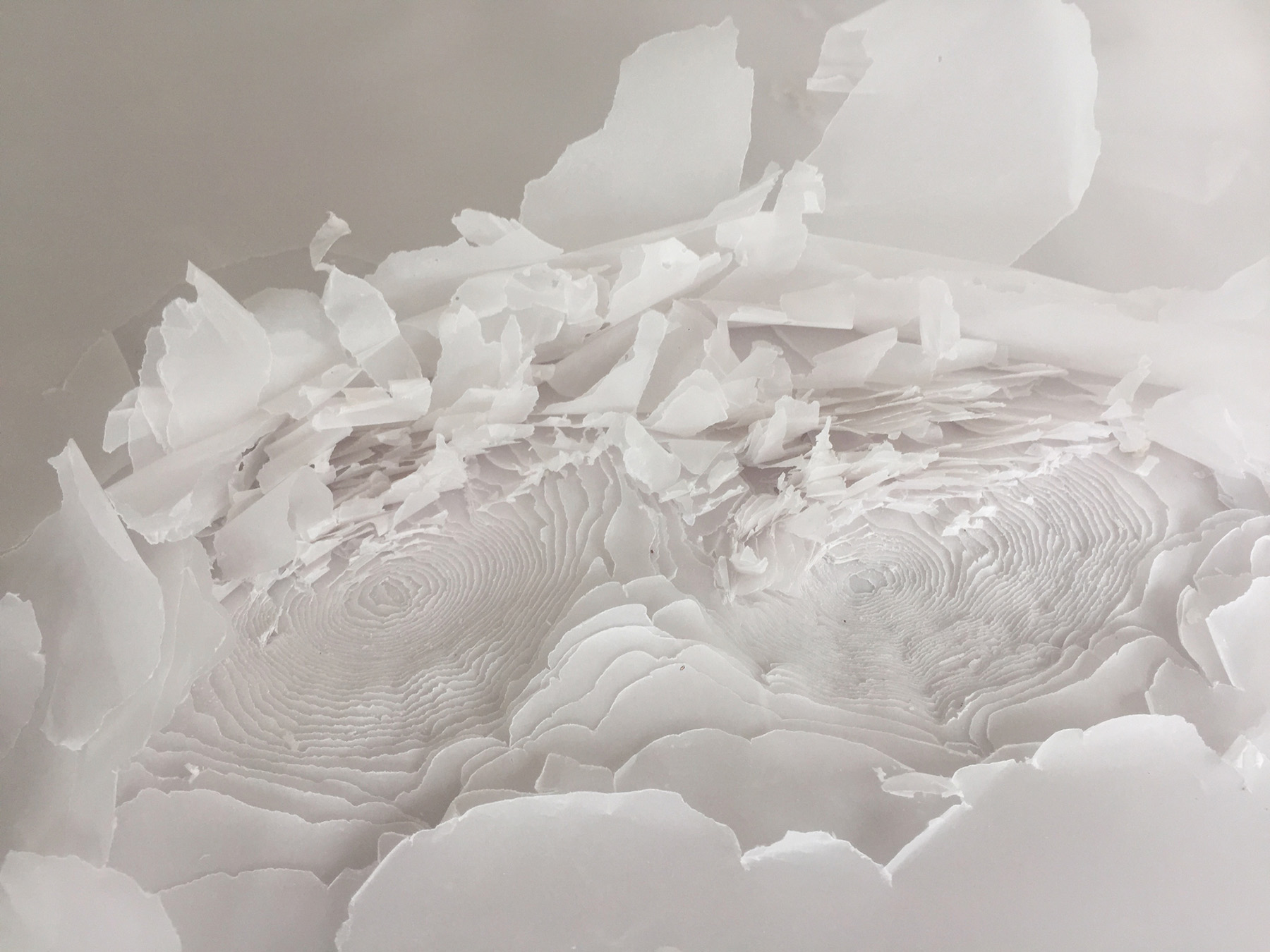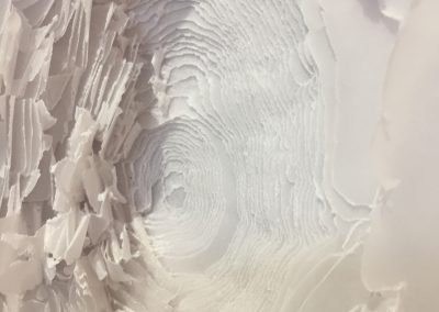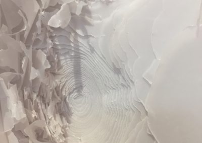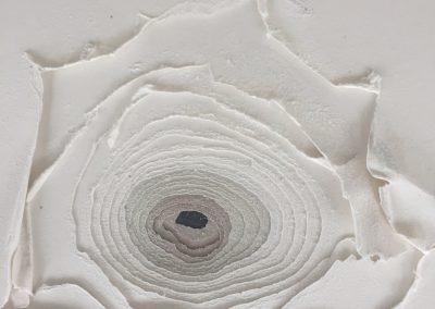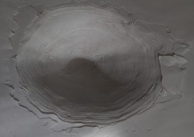 Surfaces are generated by the means of building up and wearing away – a layering and removal of materials that implies processes occurring over time – depicting the effects of erosion.