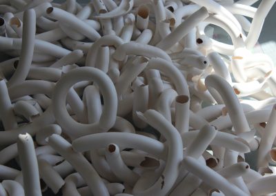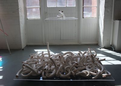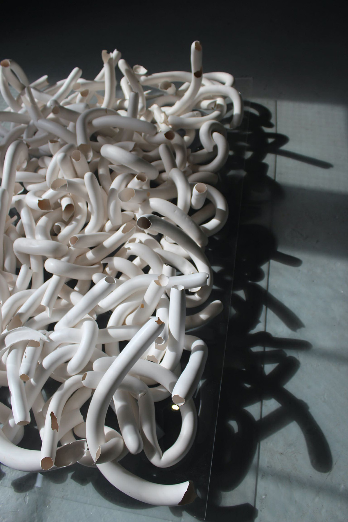 The sculptural pieces are simultaneously delicate and complex, revealing the vulnerability and strength, tenacity and brittleness of life.