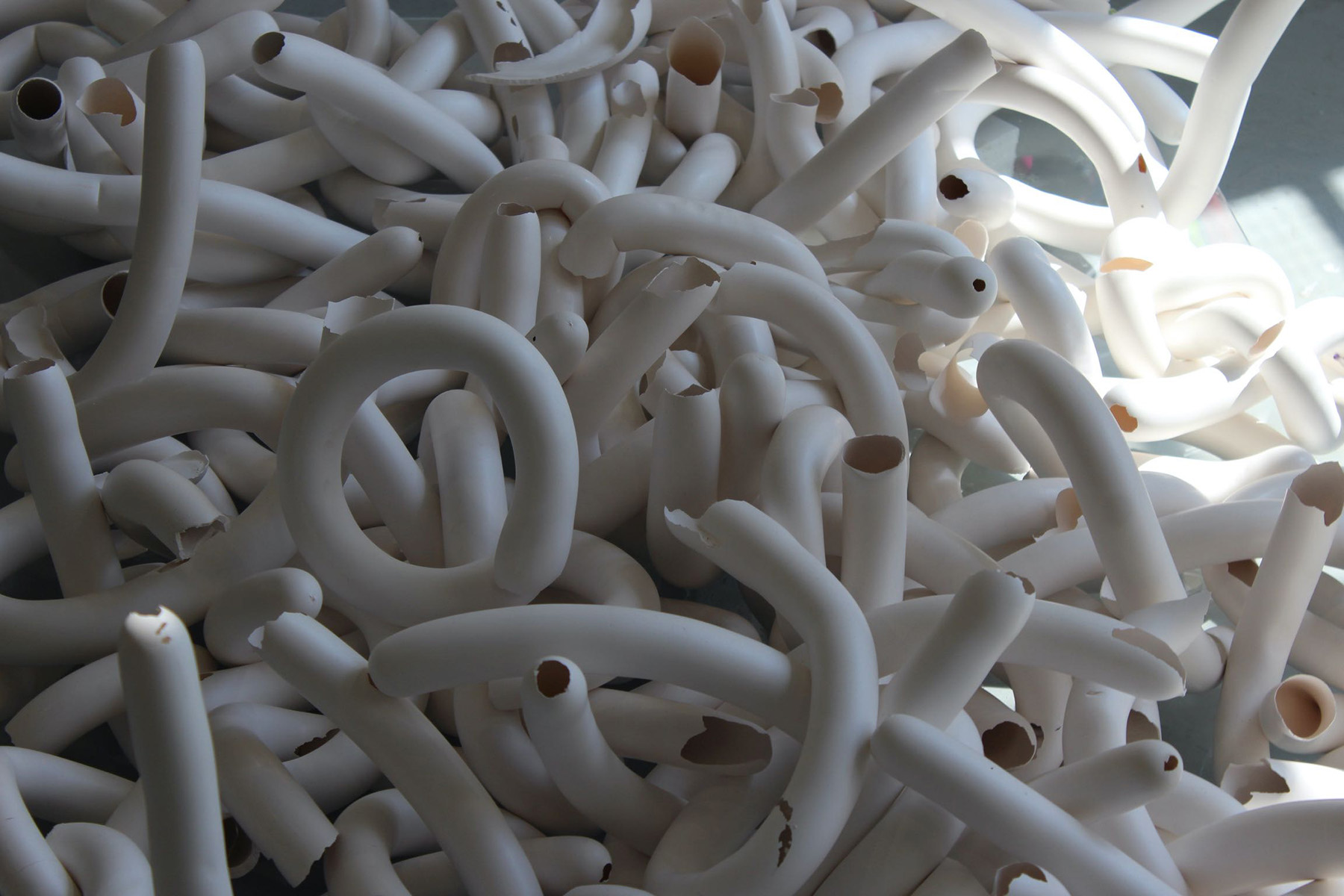 My work in plaster is derived from equal parts of perseverance, chance, and catastrophe.